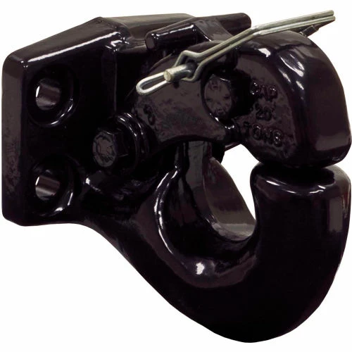 Buyers Products bolt-on 20 ton Pintle Hook from Buyers Products features tough, drop-forged steel construction and a black powder-coated finish for maximum durability and resistance to corrosion. Ideal for contractors and haulers of heavy equipment, the hook will handle maximum gross towing weights of up to 40,000 lb. Each pintle hook includes mounting information, specs sheet, drilling template, and vehicle capacity decal. Mounting Kit (part # 8525) is sold separately.