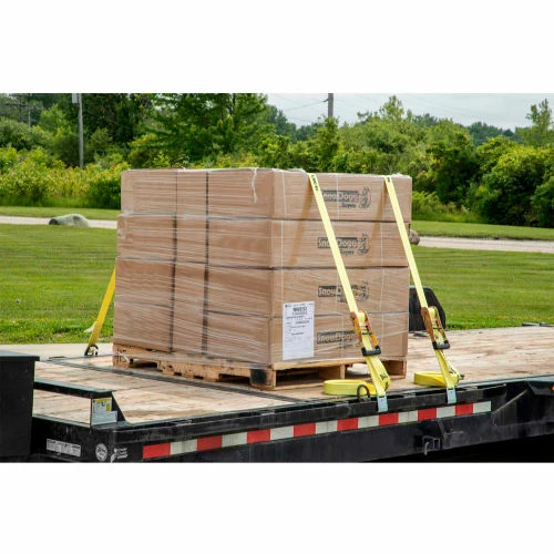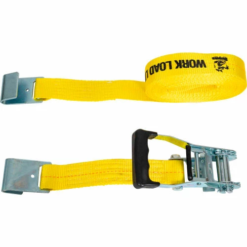 Buyers Products Commercial Grade Ratchet Strap with Soft Rubber Grip Series delivers robust holding power to safely secure heavy cargo. The wide padded through handle provides a comfortable full-hand grip with or without gloves on, and the ratchet mechanism makes it easy to precisely adjust tension. The weather-resistant polyester strap is 2 in. wide and 30 ft long with a working load limit of 3300 lb. Available with durable flat hooks for flatbed trailers. All metal components are white zinc plated for corrosion resistance.