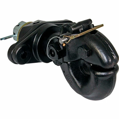 The 30 Ton Heavy Duty Swivel Type Pintle Hook from Buyers Products features swivel action to reduce stress on towing mechanisms and allow for off-road and uneven terrain towing. The swivel action allows for travel over curbs and rough or broken terrain. It’s ideal for heavy duty construction, utility equipment and highway construction towing purposes, with towing loads up to 60,000 lb. For off-road use, the load should be reduced by 25%.