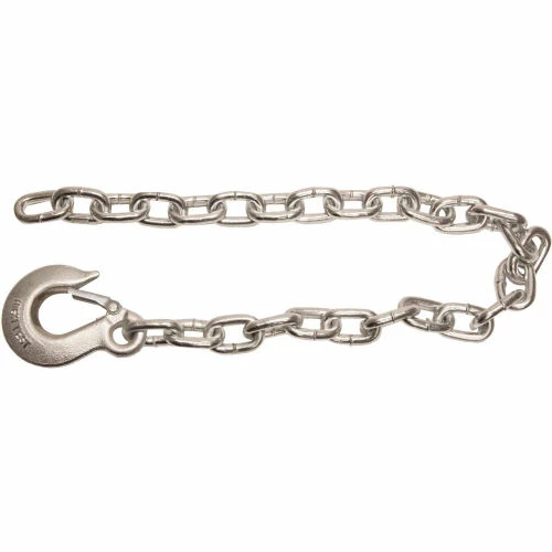 The Class 4 Safety Chain from Buyers Products has a max gross trailer weight rating of 10,000 lbs. The chain is zinc-plated to withstand corrosion. The 35″ long chain features a clevis style slip hook connection. Use two safety chains with a total holding capacity of at least the total weight of the trailer and its contents. The chains are designed for towing only, not for lifting.