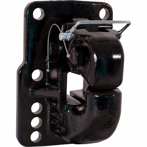 The 50 Ton Air Compensated Pintle Hook from Buyers Products cushions movement between the pintle hook and tow ring. This feature saves wear and tear on the parts, especially in sudden motion or braking situations. The pintle hook uses the vehicle’s air system to hold the drawbar eye closely to reduce wear, absorb shock, and prevent uncoupling during operation. The hook is ideal for heavy duty applications such as trailers, semitrailers, and double and triple trailer operations, both off-road and over-the-road. This product can also be used without the air chamber and plunger as a standard pintle hook. For off-road use, the load should be reduced by 25% and a swivel type trailer drawbar should be used.