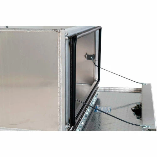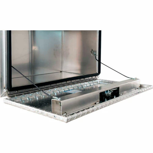 Buyers Products XD Smooth Aluminum Underbody Truck Box with Diamond Tread Door gives contractors and professionals a durable storage solution. An unobstructed box open with no center post helps keep tools safe, secure, and easy to access. The rigid, extruded box frame and .125 in. thick smooth aluminum provides reliable protection. A built-in rain gutter and automotive bulb seal work with the 3-point locking, die cast compression latch to keep out moisture and grime. The unit comes with heavy duty lanyards and a stainless steel bolt-on hinge with a 1/4 in. pin to keep contents locked in tight no matter how rough the road gets.