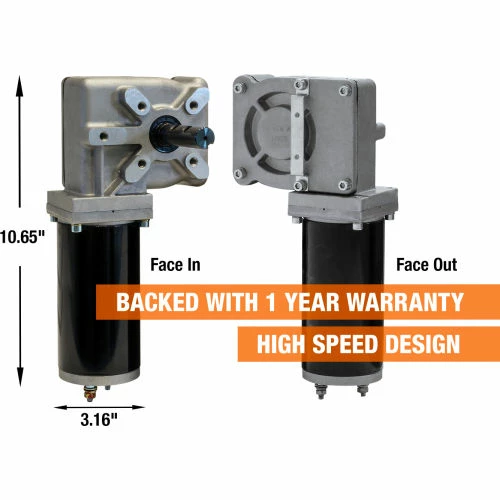 Buyers Products Tarp Gear Motors work with most Buyers Products Tarp Systems. They are availble with a 900 W/1.2 HP and come with a standard 1 year warranty. These 12V motors have a bronze alloy gear for extended life and have a 3-1/8 inch by 3/4 inch output shaft. The 5 mounting holes fit all 3-bolt or 4-bolt configurations. .