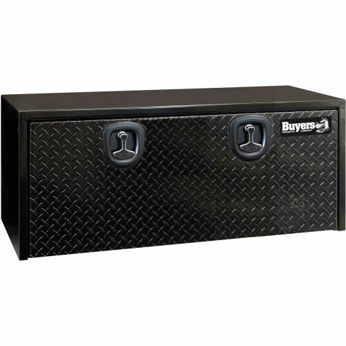 Protect and secure your equipment for the long haul with Buyers Products easy-to-access underbed truck boxes. Each professional grade truck box is crafted from strong 14 Ga steel, with a recessed 100 mil diamond tread aluminum door. Boxes feature a locking, die-cast compression latch that helps protect against theft. The box has a black powder-coated finish and includes aircraft grade cable lanyards, aluminum continuous hinge, and a watertight gasket system.