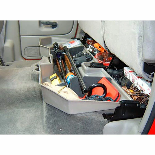 Does not fit the Dodge Mega Cab; Does not fit with factory navigation system; Does not fit with factory subwoofer, unless subwoofer is removed; Metal factory trays/lid system under the seat will need to be removed to install the DU-HA. These can be interchanged if needed; This model may not act as a legal gun case in states with gun case laws unless guns are placed in sleeves. Check with your local authorities for the laws in your state.