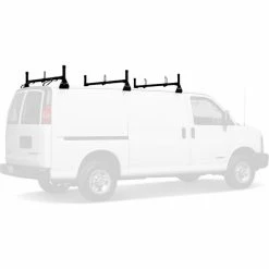 Vantech H1 3 Bar Steel Ladder Rack System for Chevy Express 1996-On, Black