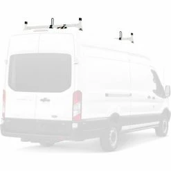 Vantech H1 2 Bar Steel Ladder Roof Rack for Ford Transit Cargo Van 2015-On, White