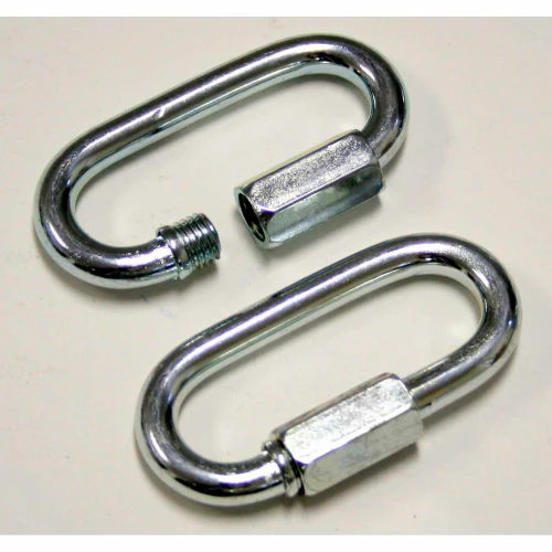 The REESE Towpower 1/4 In. chain clip quick links are designed to be used with towing safety chains or as a tie down. Added security to the tie downs or towing chains is evident when the nut is screwed on to the threaded side preventing disconnection.