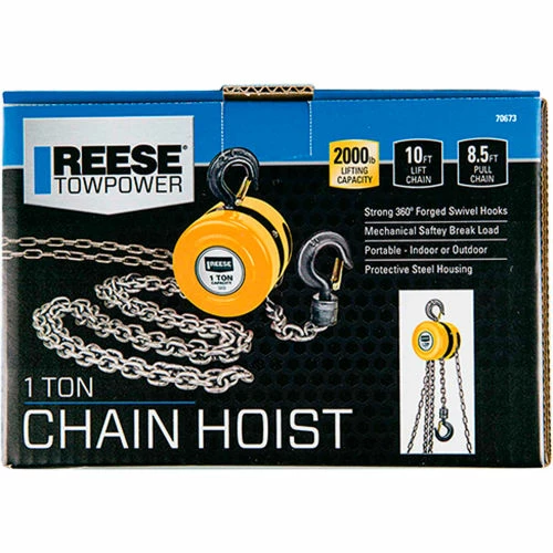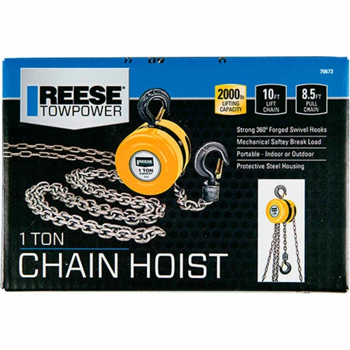 Be the first to review “Reese Towpower Portable 1 Ton Capacity Chain Hoist, 10 Ft. Lift Chain, 8.5 Ft. Pull Chain – 7067300” Cancel reply