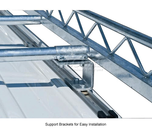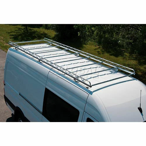 This van cargo rack easily carries oversized cargo including lumber, ladders and equipment. Integral side rails help to contain the load and offer convenient tie down positions. Rack is constructed of hot-dipped galvanized steel for corrosion resistance and strength, and is literally designed to outlast the vehicle it is mounted on. Support brackets feature a patented mounting design that offers easy installation without drilling.