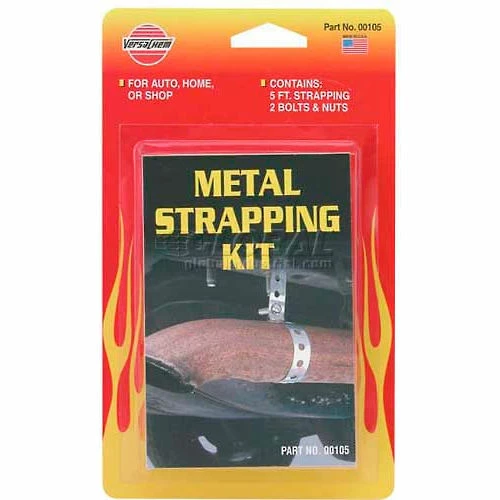 The Metal Strapping Kit comes complete with strapping, nuts and bolts. Can be cut to size and bent to shape. Use it as extra support, a hanger or clamp on mufflers, tailpipes, pipes, ducts and more.